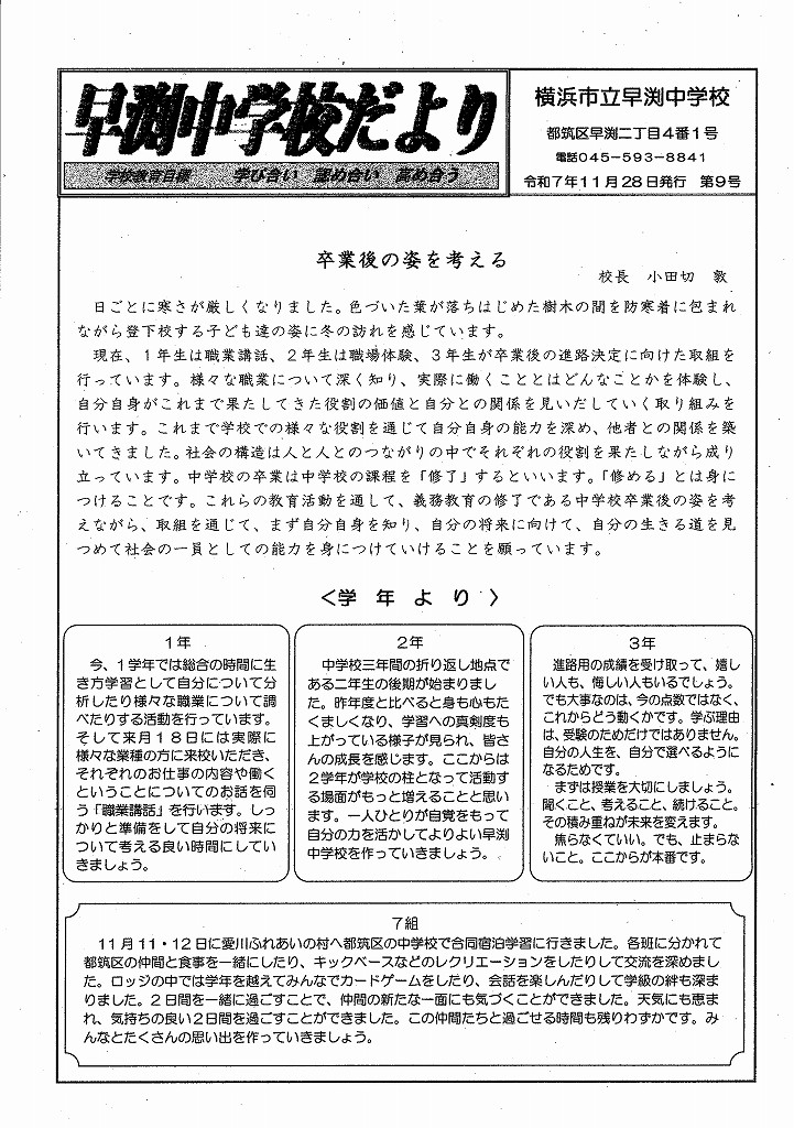 早渕中学校だより